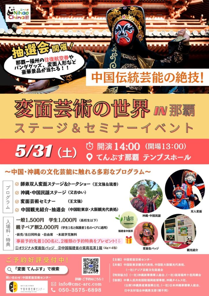 世界の人々を魅了する中国伝統芸能の絶技「変面」や中国の観光・沖縄の芸能の魅力を体感できるイベント。