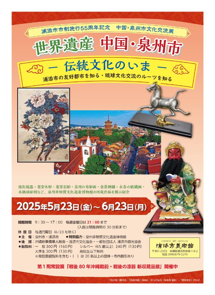 浦添市美術館では、浦添市市政施行55周年記念「中国・泉州市文化交流展」を5月23日(金)~6月23日(月)に開催します。