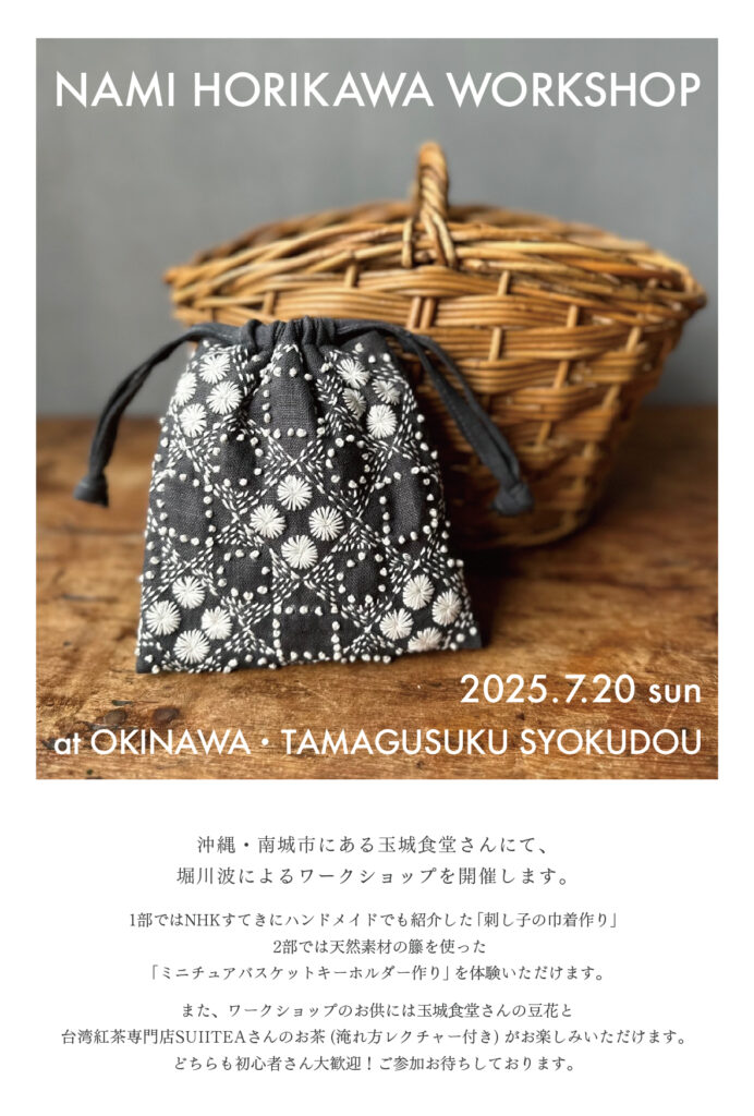 7月20日 (日) 沖縄・南城市にある玉城食堂さんにて、堀川波によるワークショップを開催します。