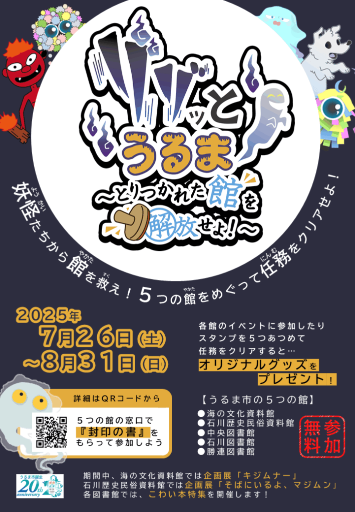 【参加無料!】うるま市内図書館・資料館の計5館で、スタンプラリーと読み聞かせイベントを開催します。