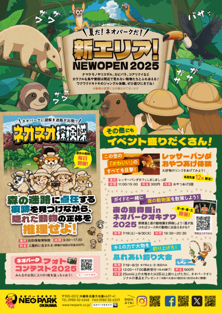 新エリア!NEWOPEN!ネオネオ探検隊同時開催 t-tamaki 3か月前 ナマケモノやリスザル、カピバラ、コアリクイなどカラフルな鳥や普段間近で見れない動物たちが近距離に!♪ ワクワクドキドキのジャングル体験、ぜひ遊びに来てね♪ ※動物は変更になる場合がございます。