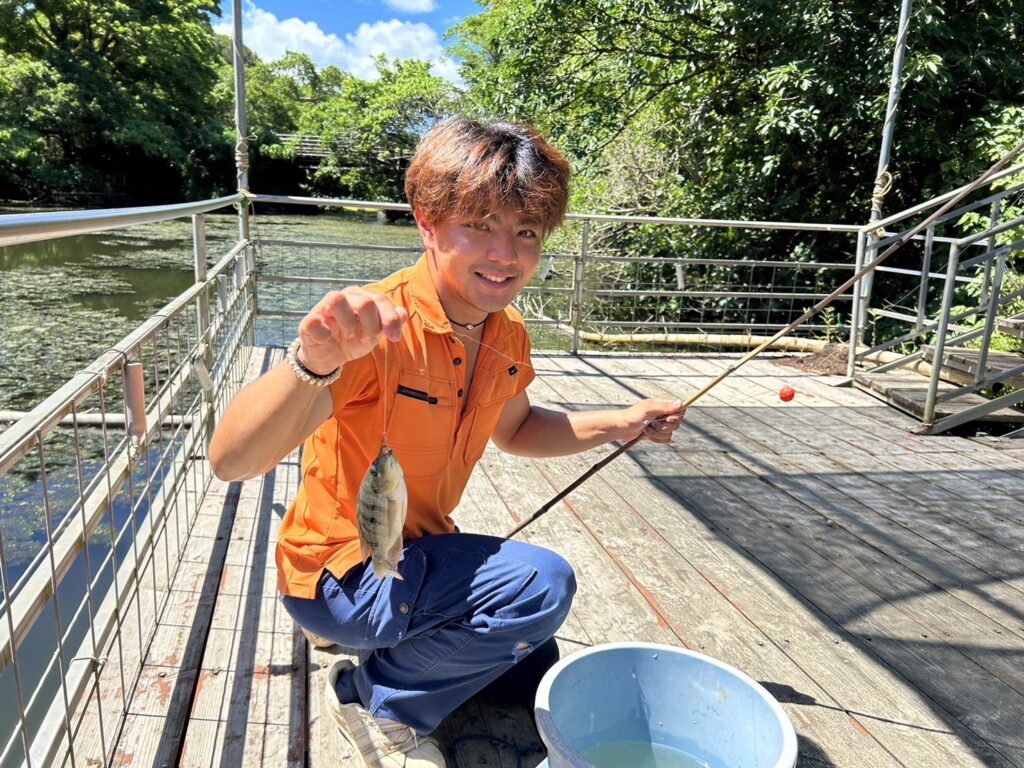 ティラピアやコイ釣りができる釣り堀で釣り大会を開催!制限時間内に20cm以上もしくは2匹以上釣るとふれあいオリジナルグッズくじが引けます。