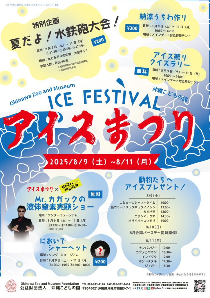 沖縄こどもの国では暑~い夏を元気に乗り切る楽しいイベント「アイスまつり」を開催。