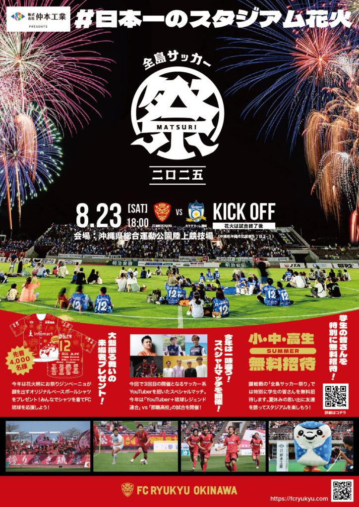 昨年までは「サッカー系Youtuber」vs「FC琉球レジェンズ」の対決で激戦を繰り広げてきた両者が、今年は夢のタッグとして混合チームを結成し、令和7年度全国高校サッカーインターハイ沖縄予選 準優勝の「那覇高校」を迎え撃ちます!