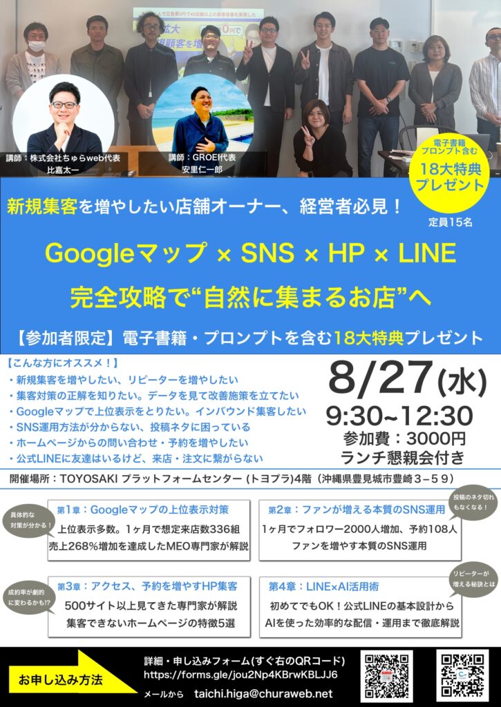 それが、たった1人で広告費0円で業種問わず40店舗以上の認知拡大、来店数を改善してきたWEB集客コンサルタントが行うWEB集客セミナーです。