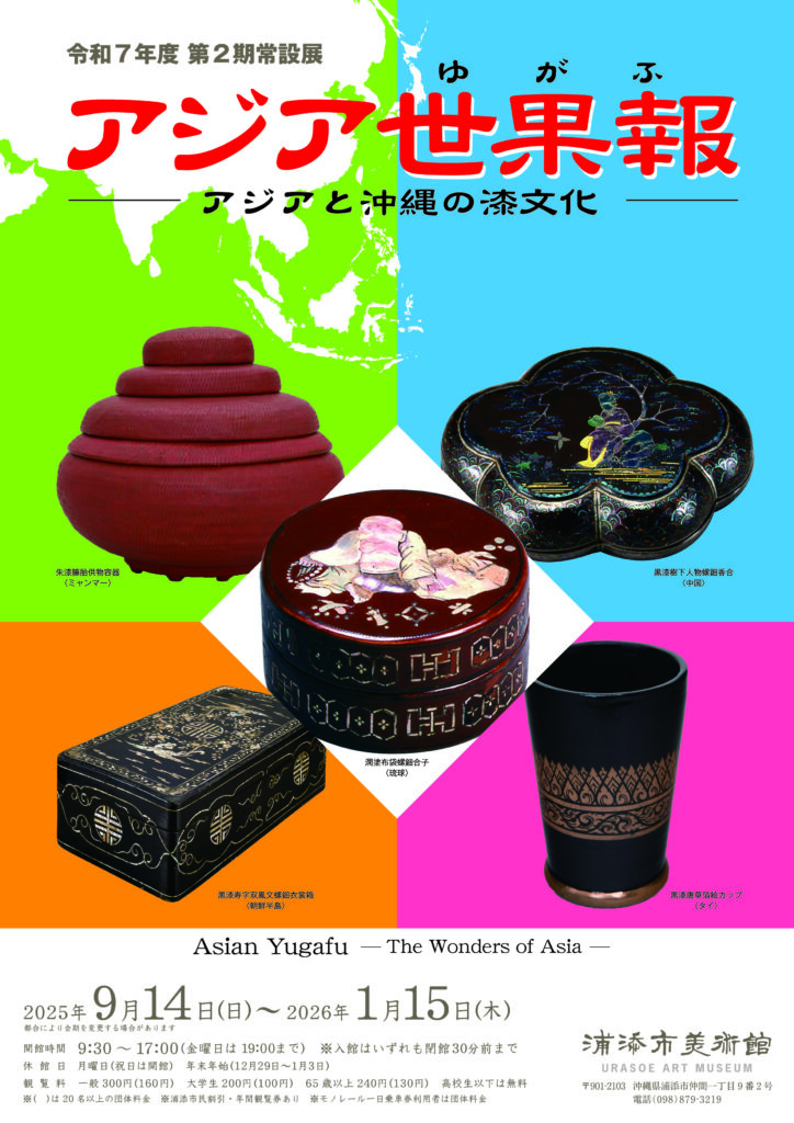 浦添市美術館では9月14日(日)から令和7年度第2期常設展「アジア世果報(ゆがふ)-アジアと沖縄の漆文化-」を開催いたします。