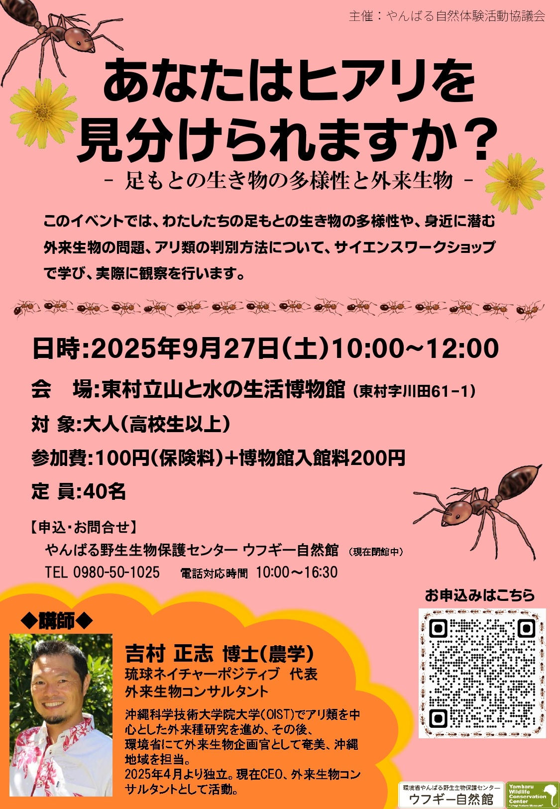 アリという生きものを通して身近な自然や外来種問題について学んでいただき、身の回りの自然環境や生物に関心をもつきっかけにしていただければと思っております。