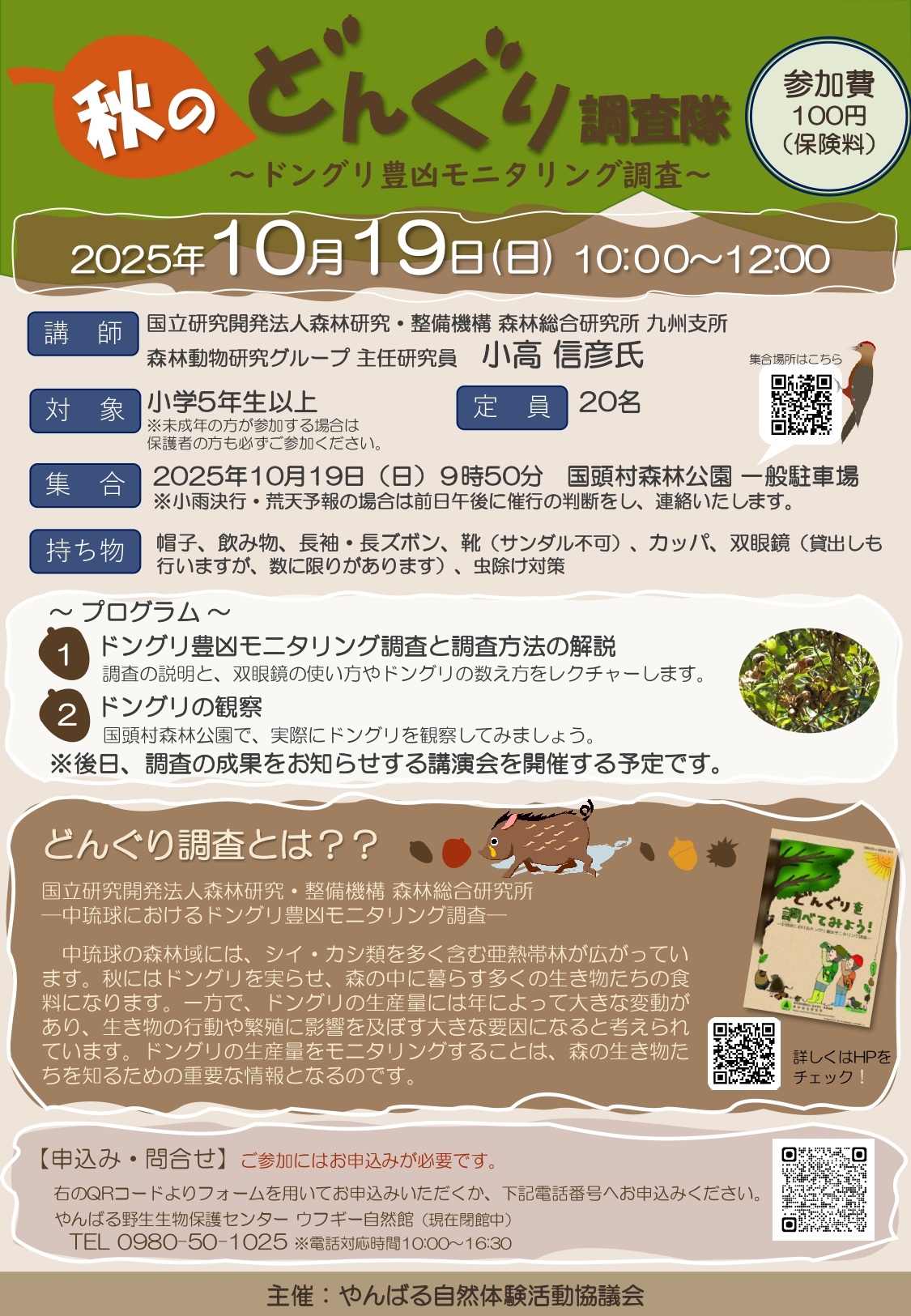 今年はドングリ調査のみのイベントとなっておりますが、後日、調査の結果をお知らせする講演会を開催する予定です。