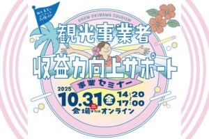 一般財団法人沖縄ITイノベーション戦略センターと一般財団法人沖縄観光コンベンションビューローが連携し設立した「観光事業者収益力向上サポートコンソーシアム」では、沖縄県受託事業の一環として「観光事業者収益力向上サポート事業セミナー」を実施します。