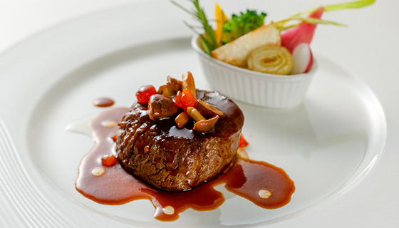 ①ニュージーランド産牛フィレ肉(100g)のポワレ シャスールソース