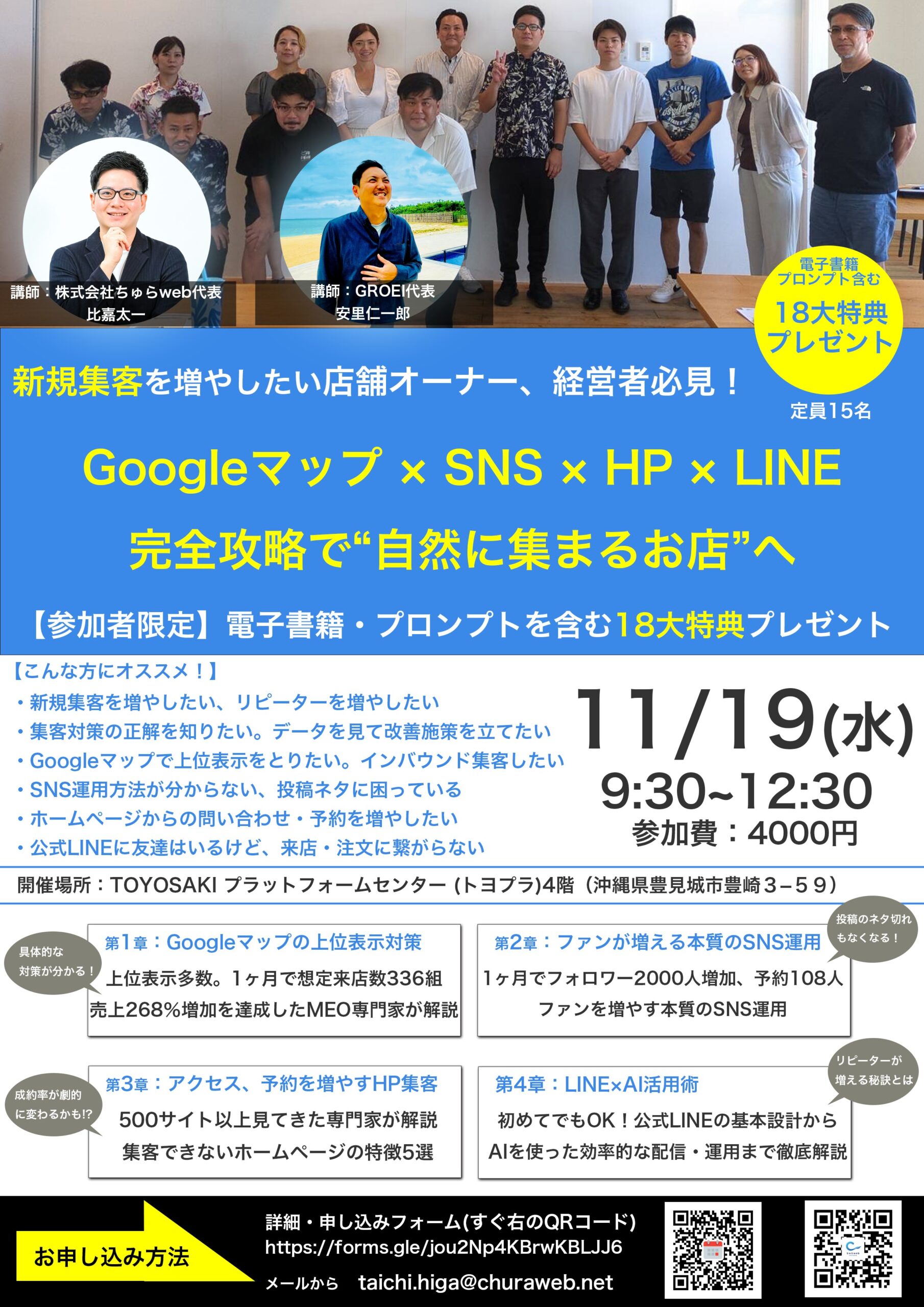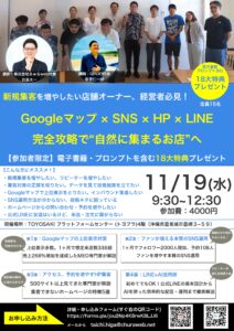 それが、たった1人で広告費0円で業種問わず40店舗以上の認知拡大、来店数を改善してきたWEB集客コンサルタントが行うWEB集客セミナーです。