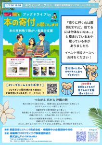 今回は、「ジョブボン」ブースを設けてブックドライブも行います。(過程で読み終わった本を集めて、地域の福祉施設や団体などに寄付する活動です。)