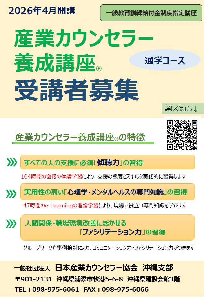 問い合わせ先: TEL: 098-975-6061 / Email: oka-office@counselor.or.jp