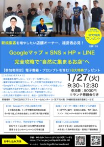 Googleマップ × SNS × HP × LINE 完全攻略で“自然に集まるお店”へ 日時: 2025年12月13日(土) 9:30〜12:30  場所: TOYOSAKI プラットフォームセンター (トヨプラ) 4階 https://maps.app.goo.gl/YfazFV8LcohWP2un6 参加費:5000円。ラン...