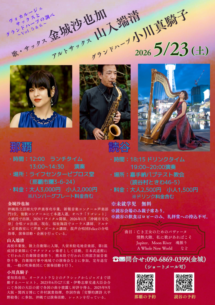 【読谷】ヴォカルージュ サックスとハープの調べ