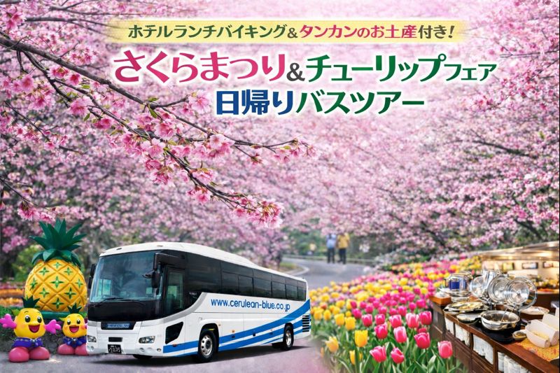 沖縄の春を満喫!★さくら祭り×チューリップフェア★ホテルランチバイキング&タンカンお土産付き日帰りバスツアー